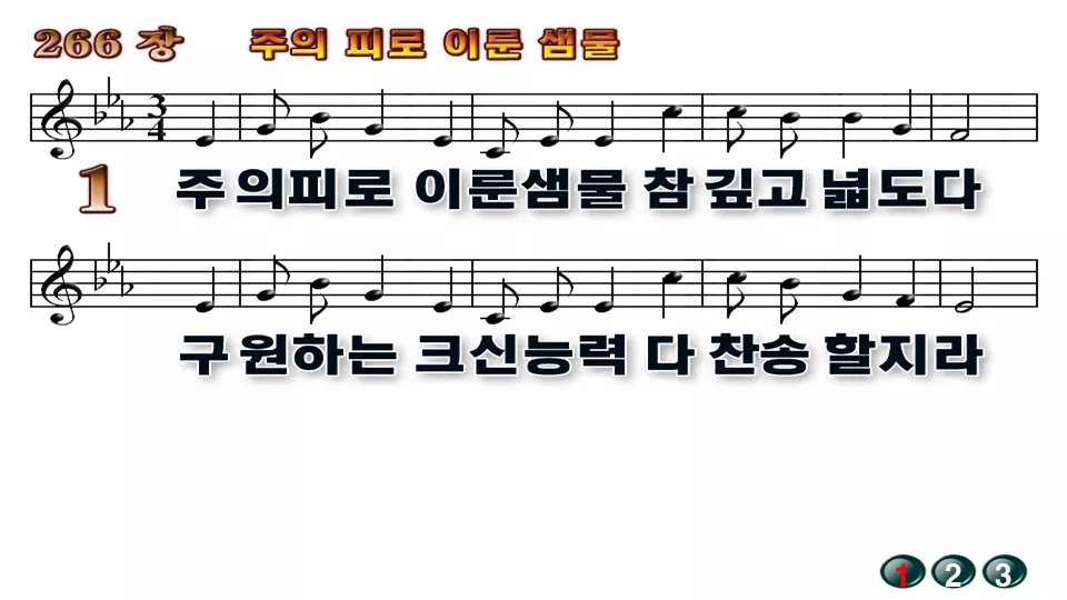 새찬송가 PPT: 266장 주의 피로 이룬 샘물(16:9/가사/PPT악보/다운로드/배경X)