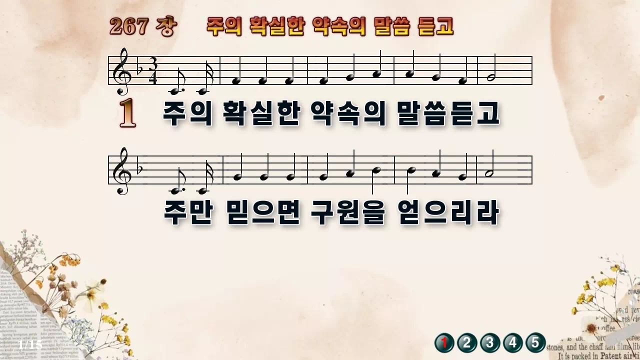 새찬송가 '267장 주의 확실한 약속의 말씀 듣고'의 16:9 와이드버전으로 편집된 새찬송가 PPT악보입니다.