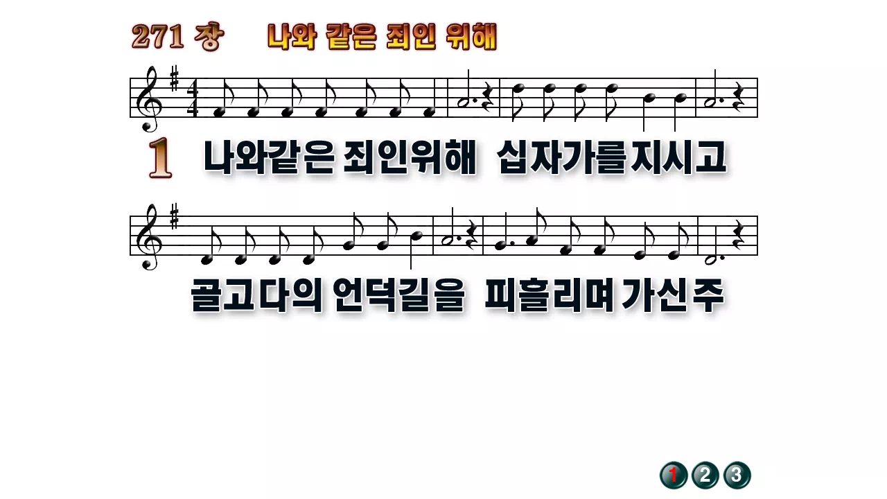 새찬송가 '271장 나와 같은 죄인 위해'의 16:9 와이드버전으로 편집된 배경 없는 새찬송가 PPT악보입니다.
