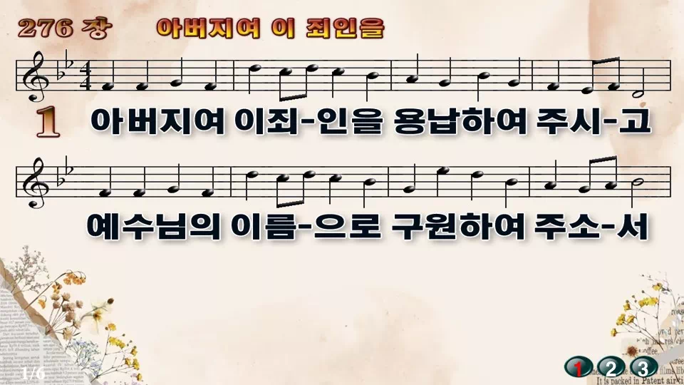🎼새찬송가 '276장 아버지여 이 죄인을' 고화질 악보 다운로드
