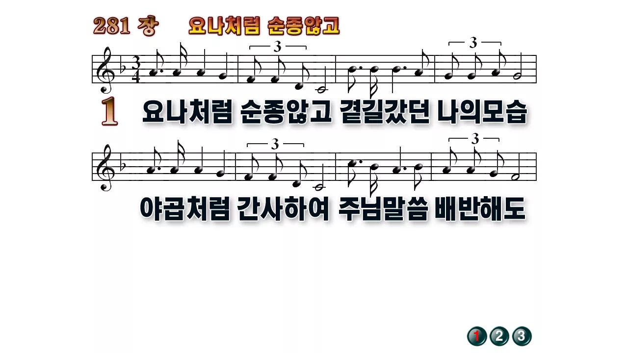 새찬송가 PPT: 281장 요나처럼 순종않고(16:9/가사/PPT악보/다운로드/배경X)