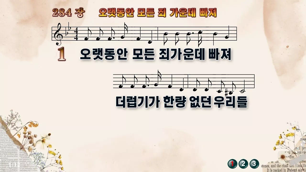 새찬송가 '284장 오랫동안 모든 죄 가운데 빠져'의 16:9 와이드버전으로 편집된 새찬송가 PPT악보입니다.