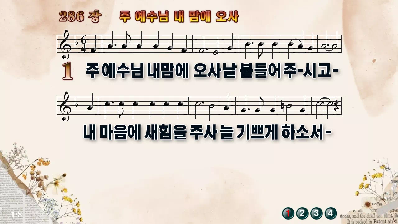 새찬송가 '286장 주 예수님 내 맘에 오사'의 16:9 와이드버전으로 편집된 새찬송가 PPT악보입니다.