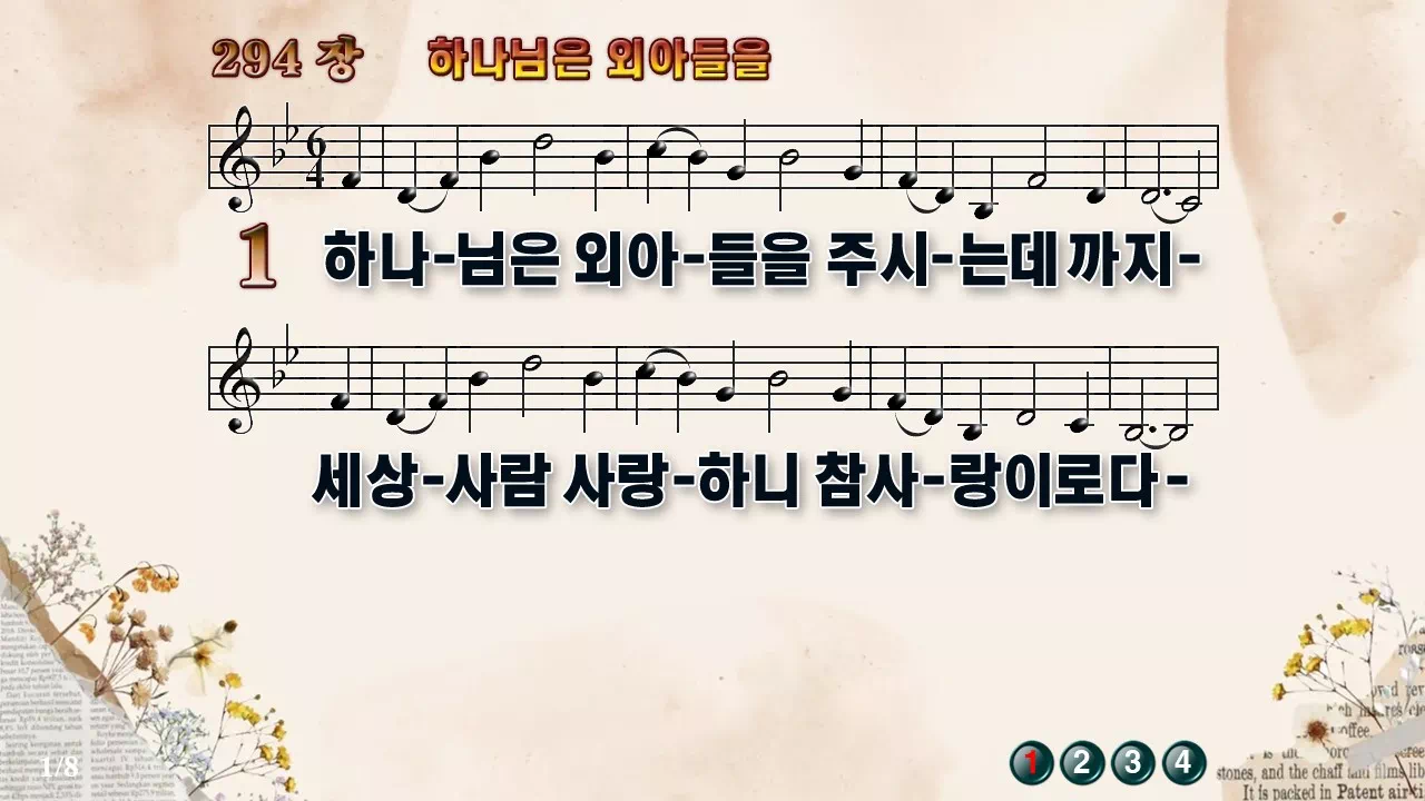 새찬송가 '294장 하나님은 외아들을'의 16:9 와이드버전으로 편집된 새찬송가 PPT악보입니다.