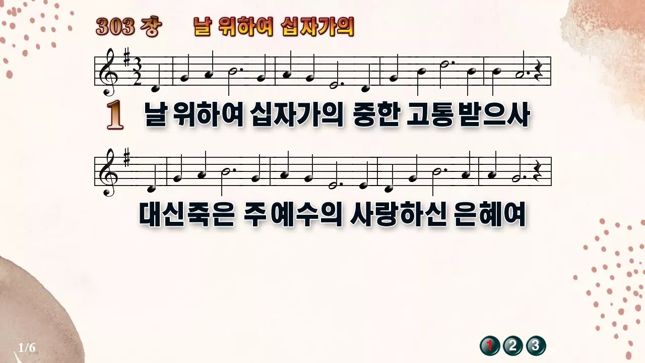 새찬송가 PPT: 303장 날 위하여 십자가의(16:9/가사/PPT악보/다운로드/배경O)