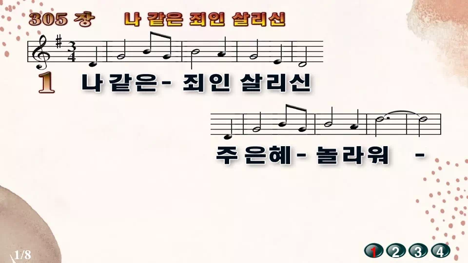 새찬송가 '305장 나 같은 죄인 살리신'16:9 와이드버전으로 편집된 새찬송가 PPT악보입니다.
