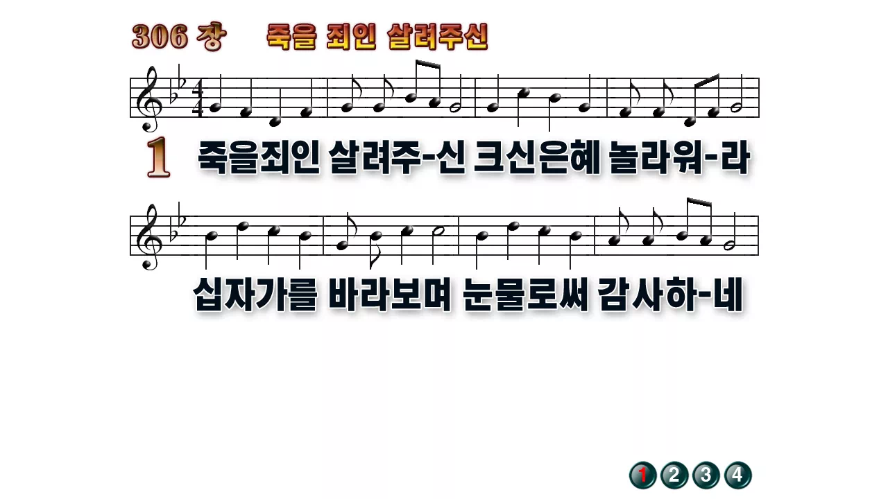 새찬송가 '306장 죽을 죄인 살려주신'의 16:9 와이드버전으로 편집된 배경 없는 새찬송가 PPT악보입니다.