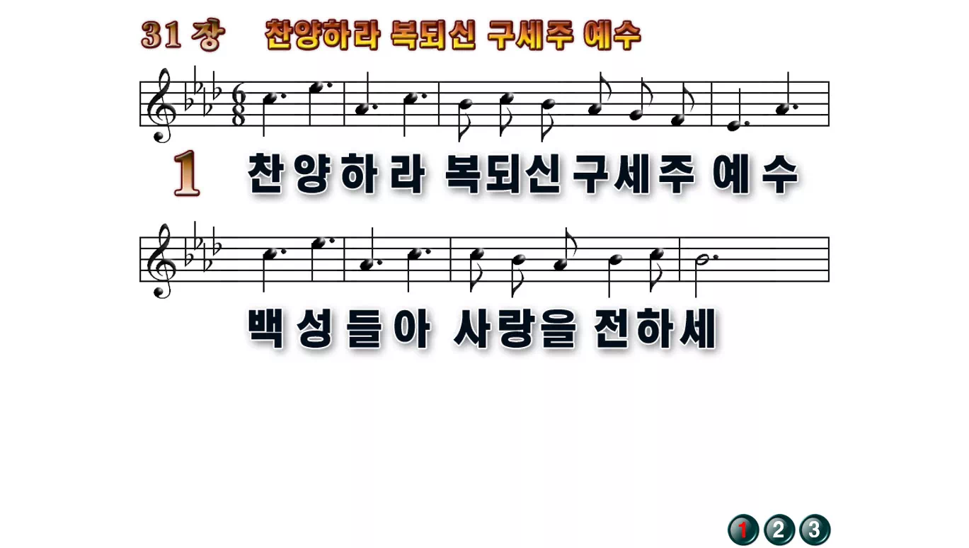 새찬송가 PPT: 31장 찬양하라 복되신 구세주 예수(16:9/가사/PPT악보/다운로드/배경X)