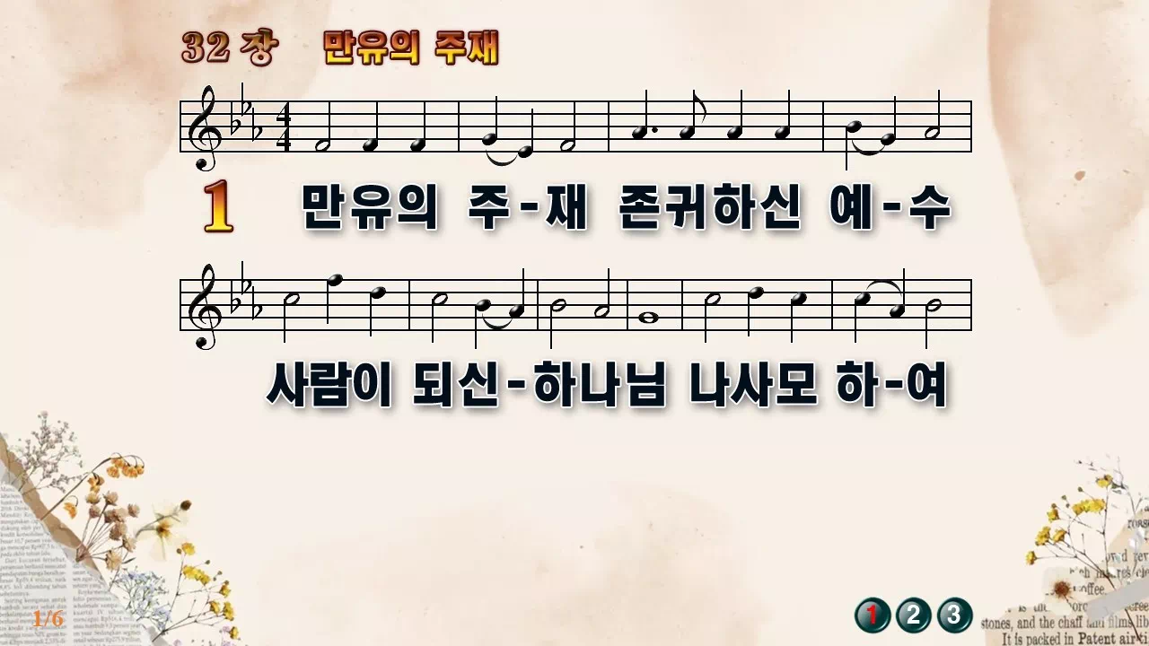새찬송가 '32장 만유의 주재'의 16:9 와이드버전으로 편집된 새찬송가 PPT악보입니다.