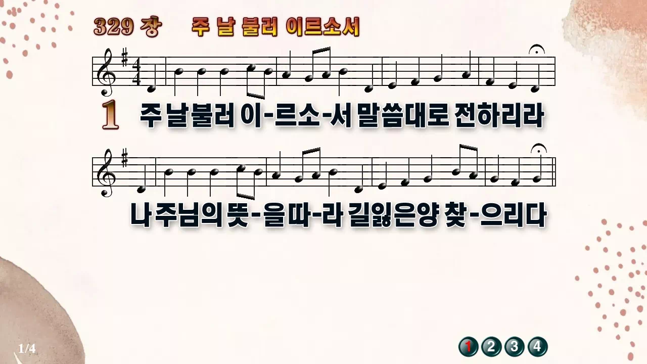 새찬송가 '329장 주 날 불러 이르소서'의 16:9 와이드버전으로 편집된 새찬송가 PPT악보입니다.