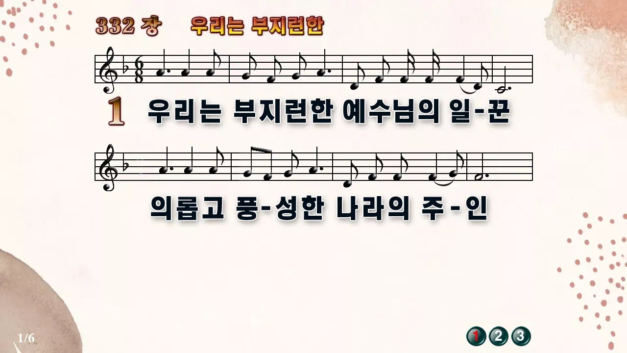 새찬송가 PPT: 332장 우리는 부지런한(16:9/가사/PPT악보/다운로드/배경O)