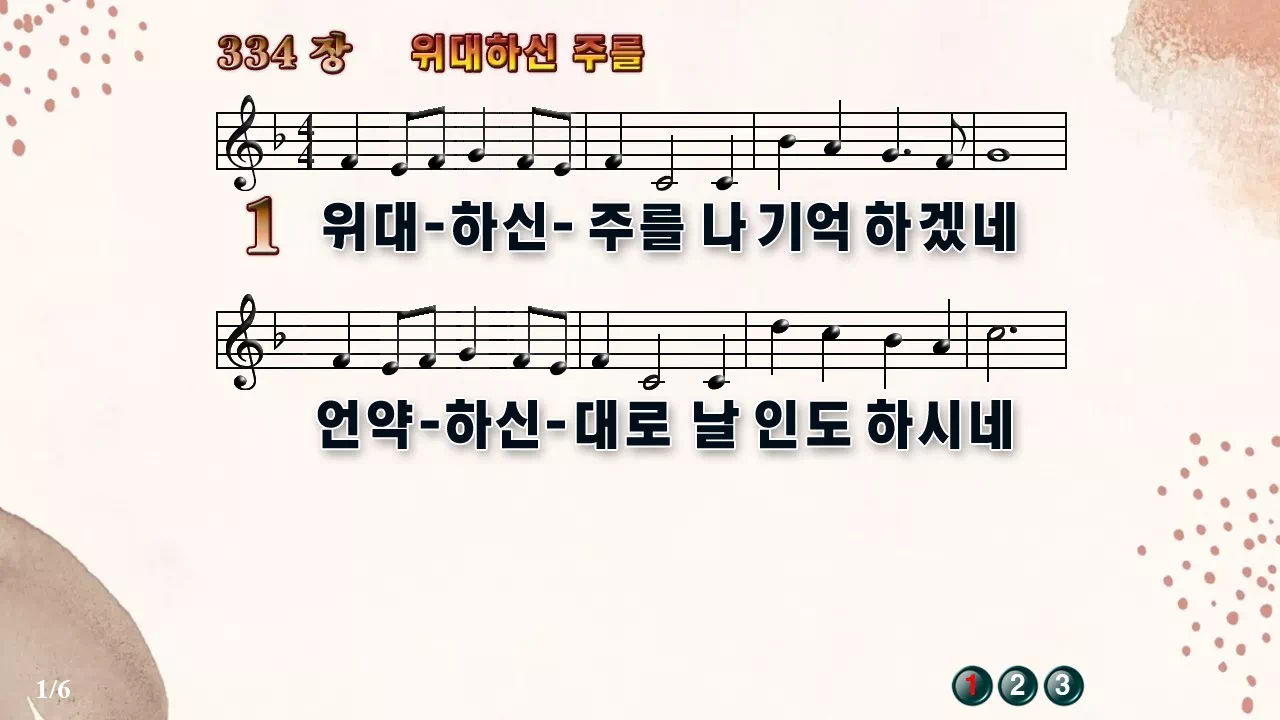 새찬송가 '334장 위대하신 주를'의 16:9 와이드버전으로 편집된 새찬송가 PPT악보입니다.