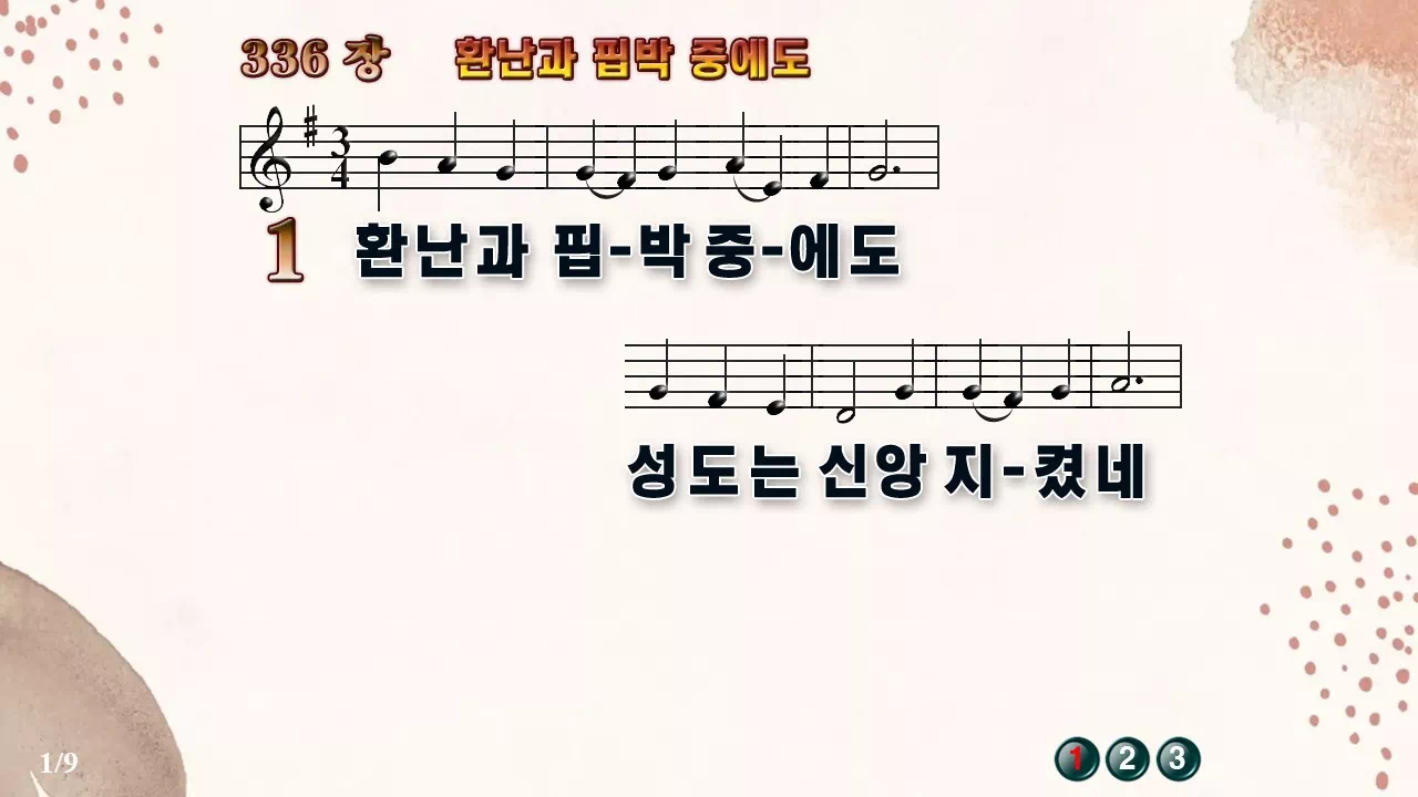 새찬송가 PPT: 336장 환난과 핍박 중에도(16:9/가사/PPT악보/다운로드/배경O)