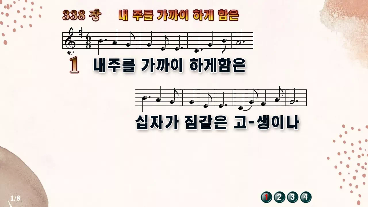 새찬송가 '338장 내 주를 가까이 하게 함은'의 16:9 와이드버전으로 편집된 새찬송가 PPT악보입니다.