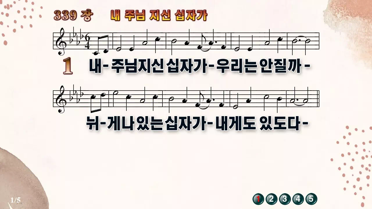새찬송가 '339장 내 주님 지신 십자가'의 16:9 와이드버전으로 편집된 새찬송가 PPT악보입니다.