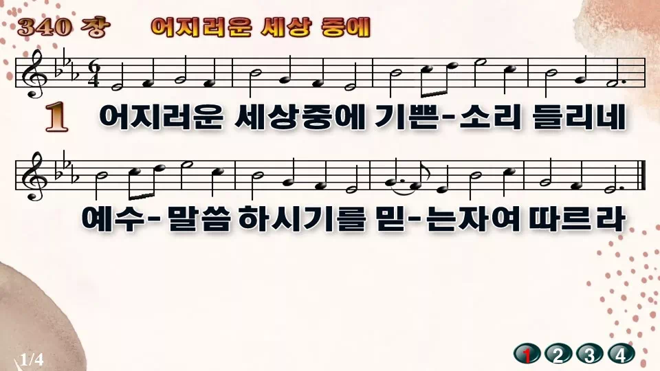새찬송가 '340장 어지러운 세상 중에'16:9 와이드버전으로 편집된 새찬송가 PPT악보입니다.
