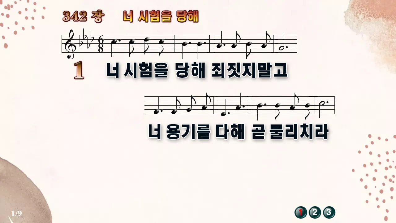 새찬송가 '342장 너 시험을 당해'의 16:9 와이드버전으로 편집된 새찬송가 PPT악보입니다.