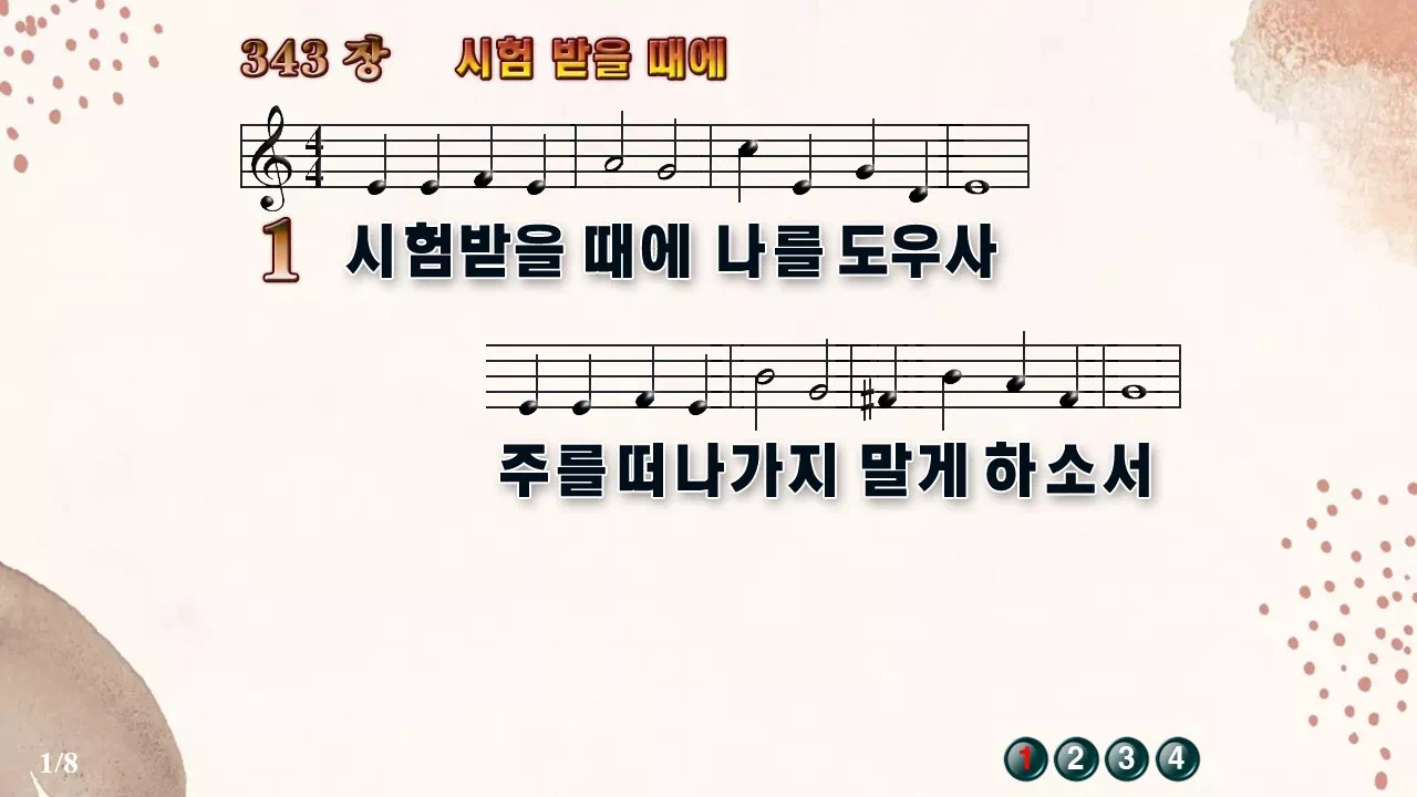 새찬송가 '343장 시험 받을 때에'의 16:9 와이드버전으로 편집된 새찬송가 PPT악보입니다.