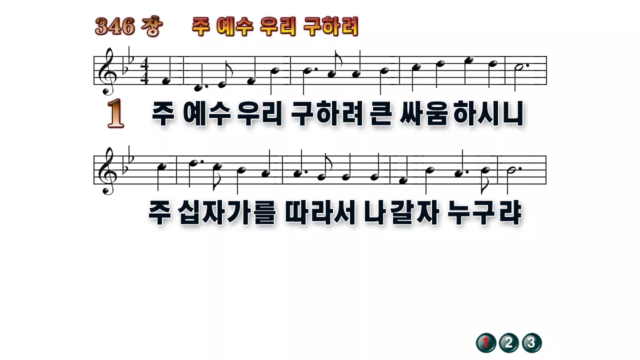 새찬송가 '346장 주 예수 우리 구하려'의 16:9 와이드버전으로 편집된 배경 없는 새찬송가 PPT악보입니다.