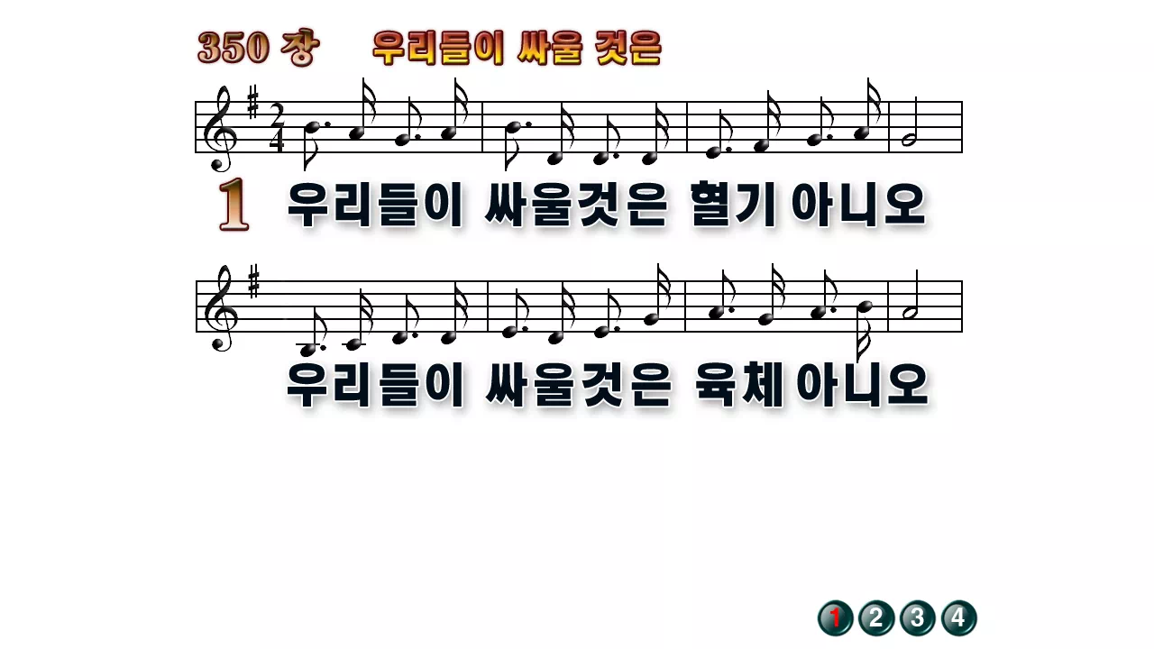 새찬송가 '350장 우리들이 싸울것은'의 16:9 와이드버전으로 편집된 배경 없는 새찬송가 PPT악보입니다.