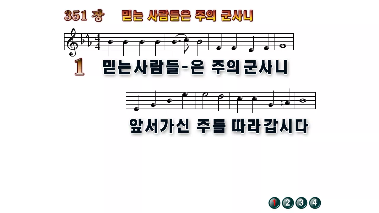 새찬송가 '351장 믿는 사람들은 주의 군사니'16:9 와이드버전으로 편집된 배경 없는 새찬송가 PPT악보입니다.