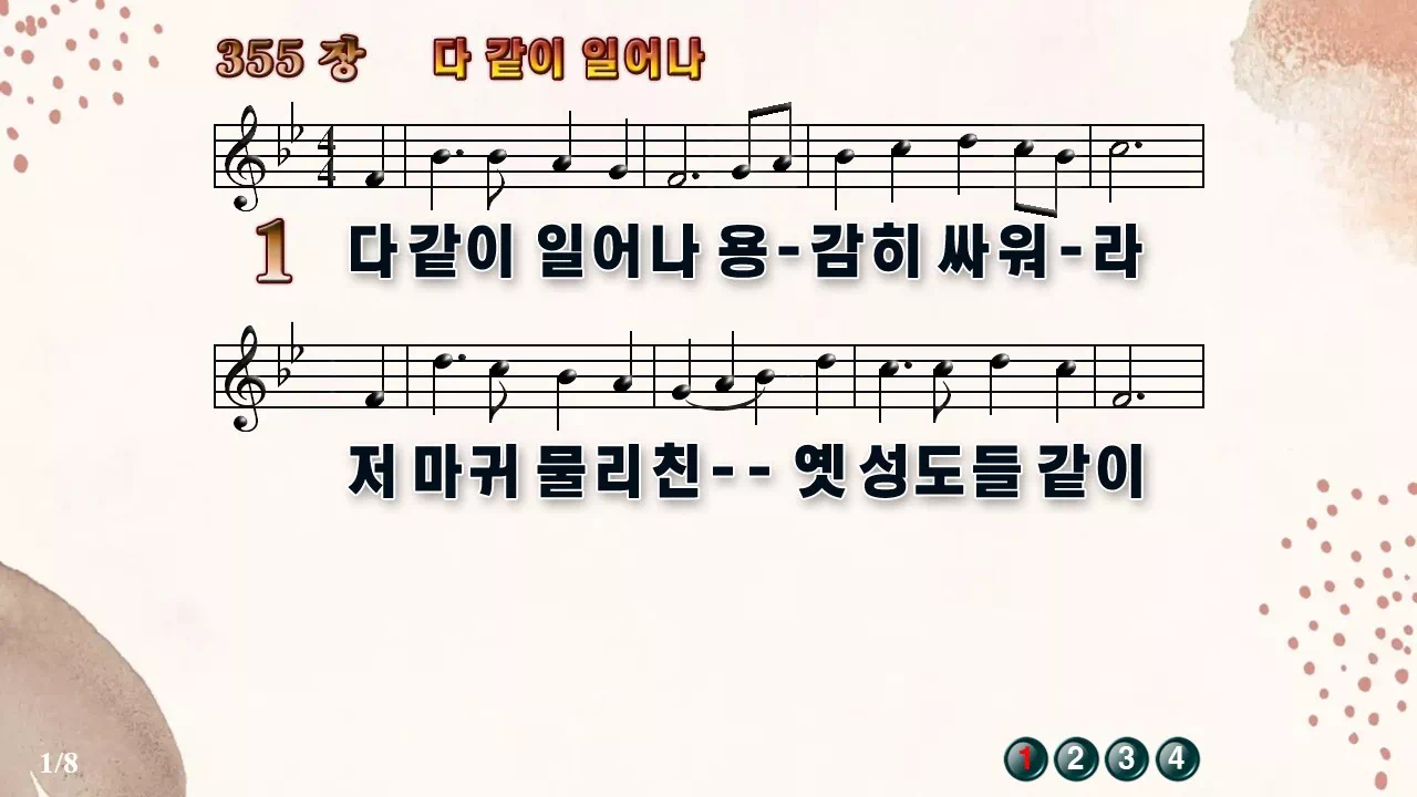 새찬송가 PPT: 355장 다같이 일어나(16:9/가사/PPT악보/다운로드/배경O)