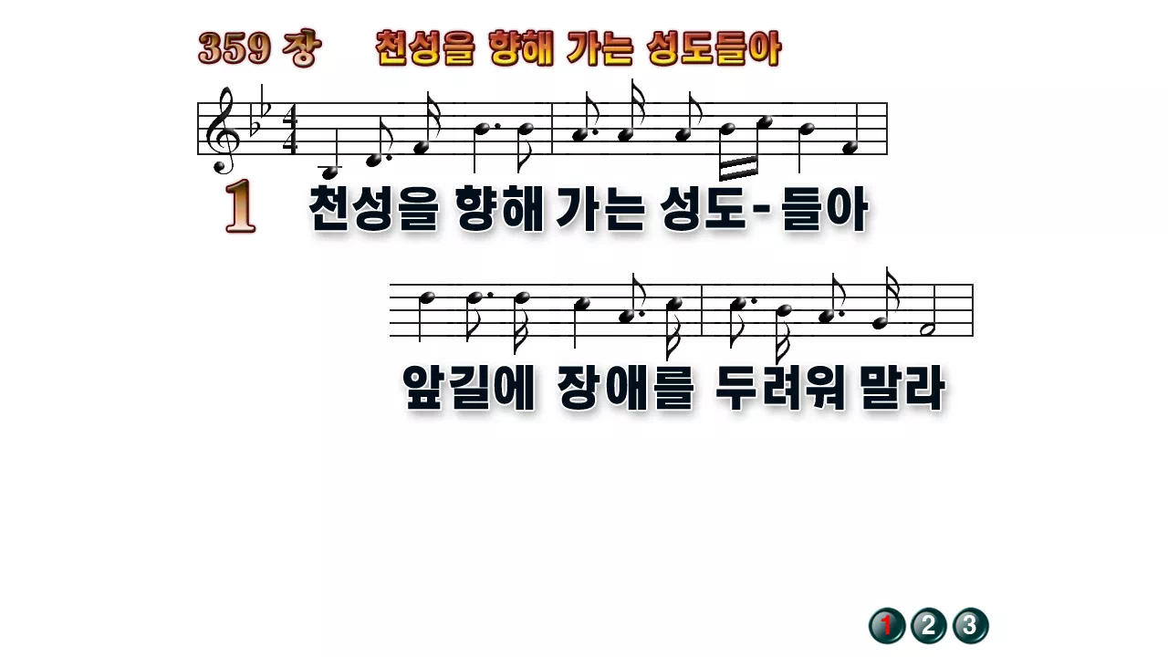 새찬송가 '359장 천성을 향해 가는 성도들아'16:9 와이드버전으로 편집된 배경 없는 새찬송가 PPT악보입니다.