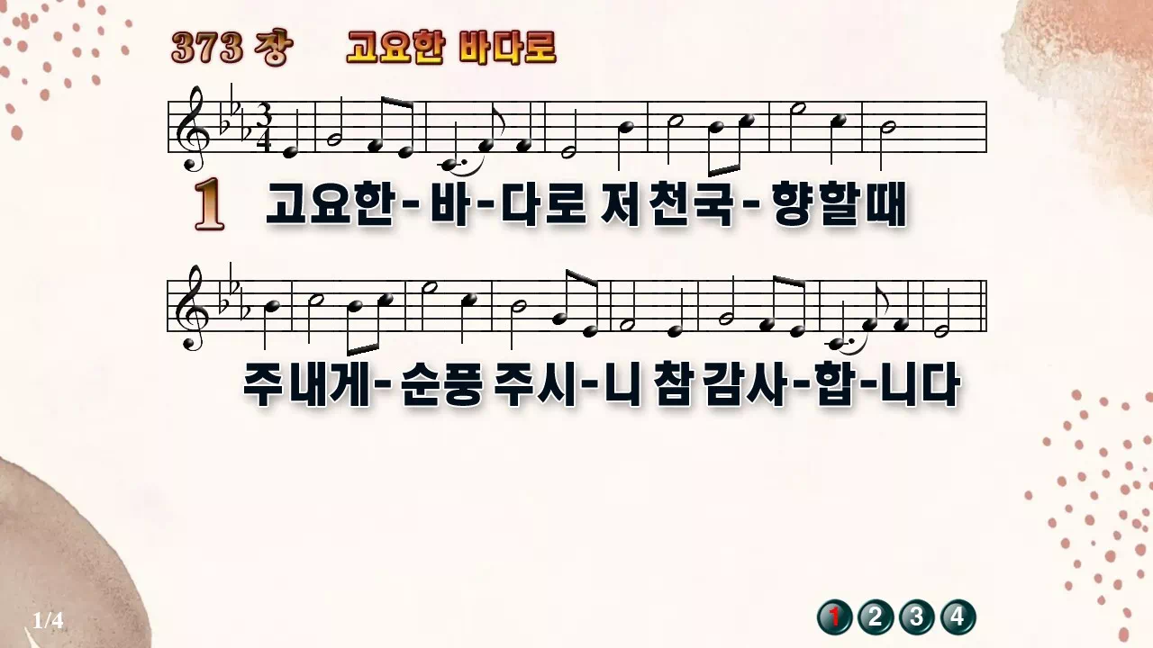 새찬송가 PPT: 373장 고요한 바다로(16:9/가사/PPT악보/다운로드/배경O)
