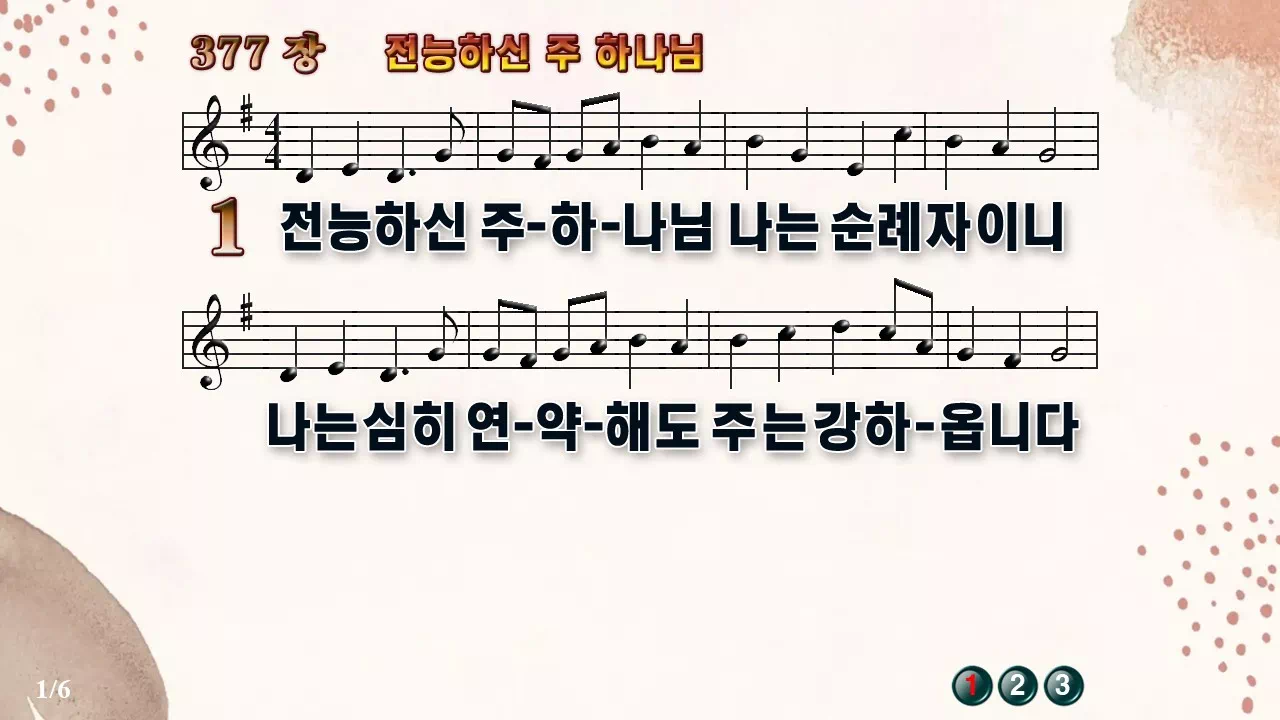 새찬송가 '377장 전능하신 주 하나님'의 16:9 와이드버전으로 편집된 새찬송가 PPT악보입니다.