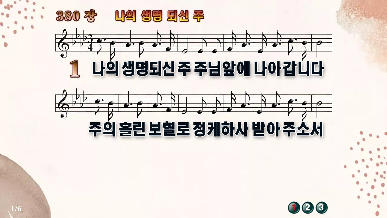 새찬송가 '380장 나의 생명 되신 주'의 16:9 와이드버전으로 편집된 새찬송가 PPT악보입니다.