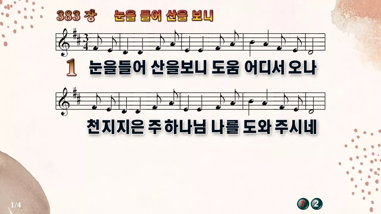 새찬송가 '383장 눈을 들어 산을보니'의 16:9 와이드버전으로 편집된 새찬송가 PPT악보입니다.