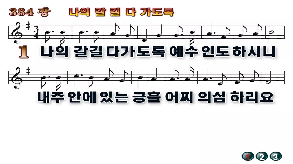 새찬송가 '384장 나의 갈길 다 가도록'16:9 와이드버전으로 편집된 배경 없는 새찬송가 PPT악보입니다.