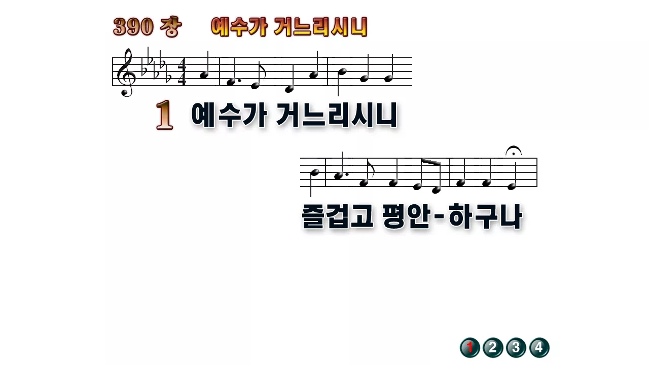 새찬송가 '390장 예수가 거느리시니'의 16:9 와이드버전으로 편집된 배경 없는 새찬송가 PPT악보입니다.