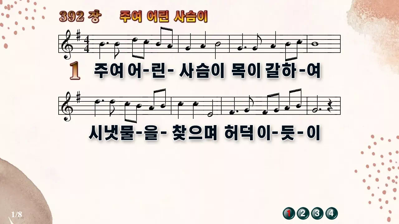 새찬송가 PPT: 392장 주여 어린 사슴이(16:9/가사/PPT악보/다운로드/배경O)