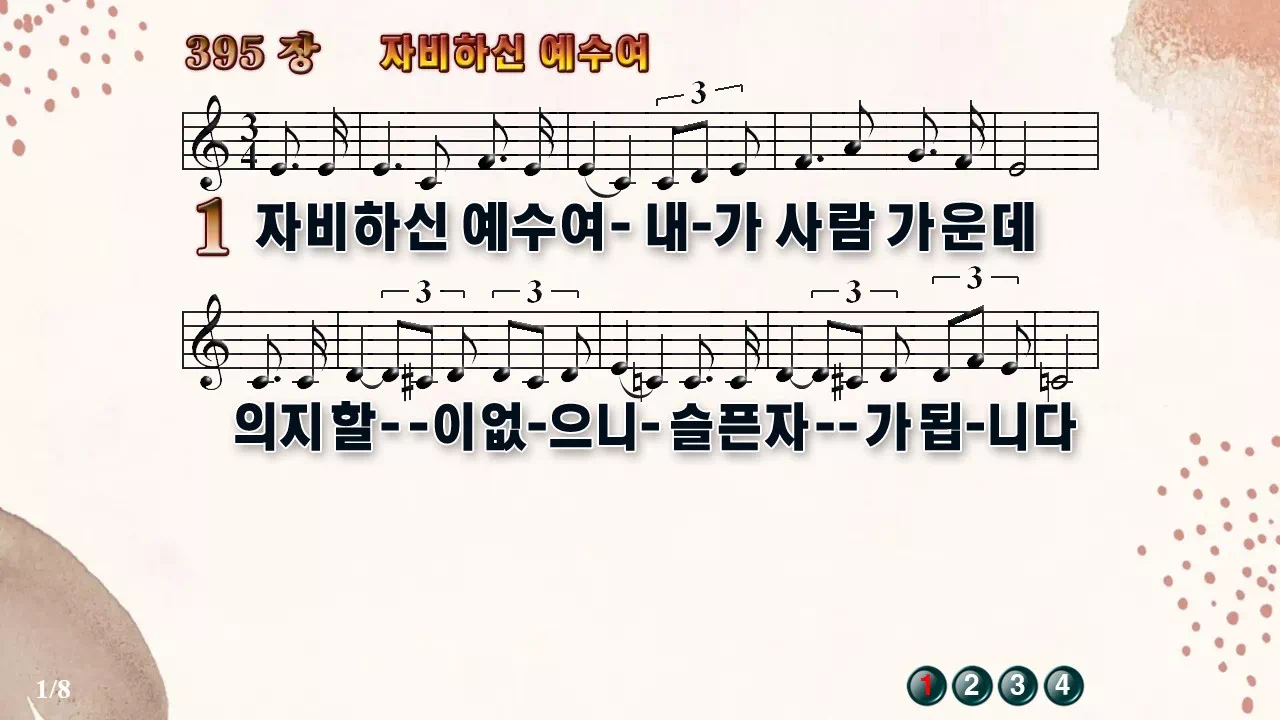 새찬송가 '395장 자비하신 예수여'16:9 와이드버전으로 편집된 새찬송가 PPT악보입니다.