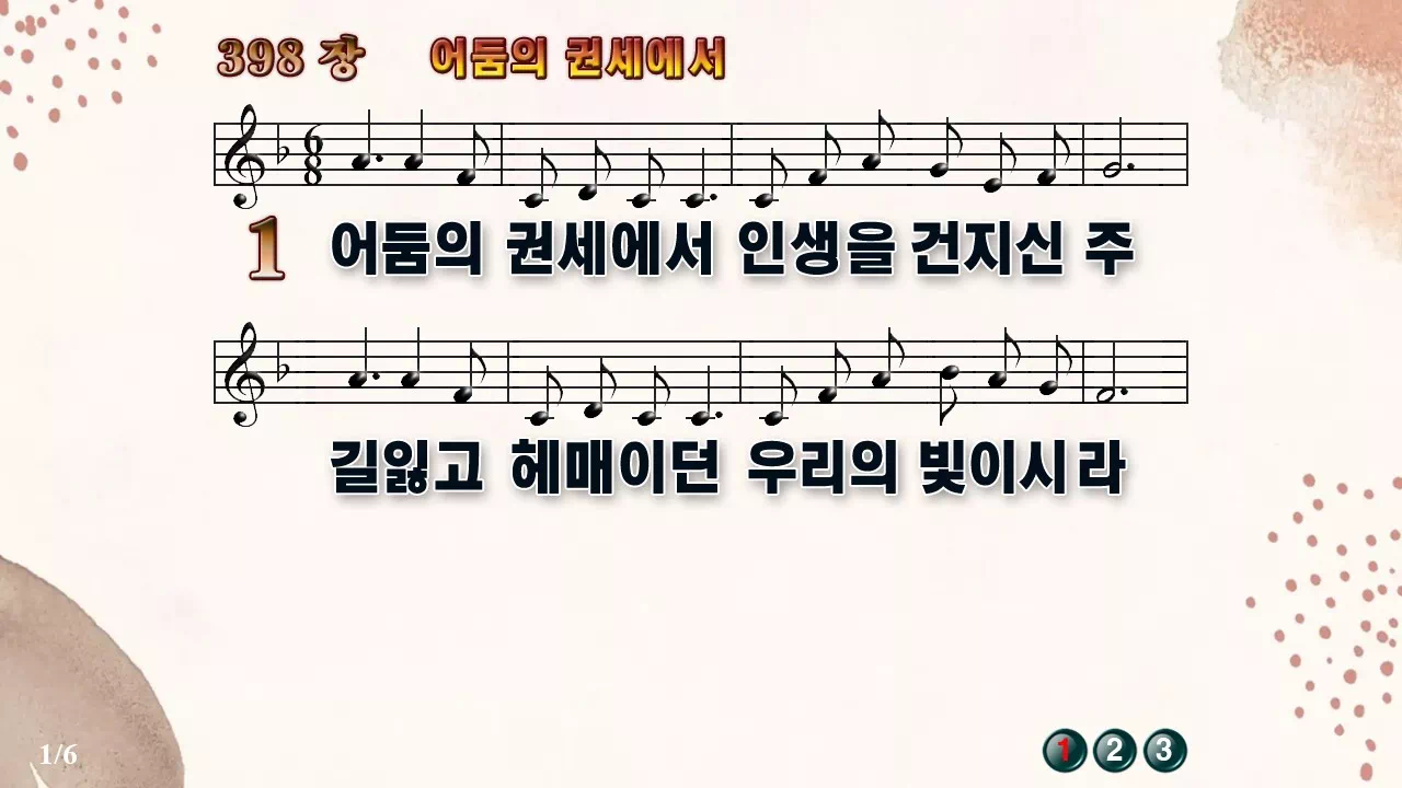 새찬송가 '398장 어둠의 권세에서'의 16:9 와이드버전으로 편집된 새찬송가 PPT악보입니다.