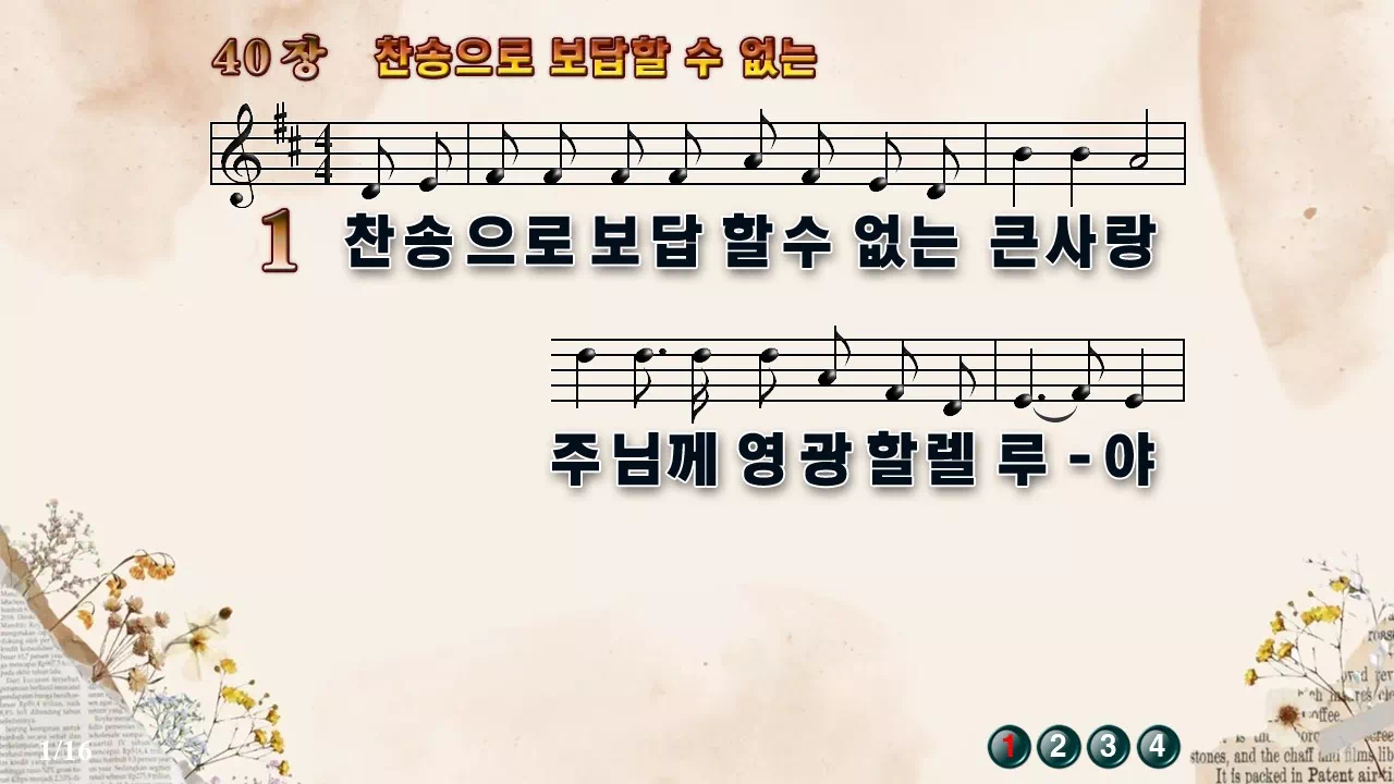 새찬송가 '40장 찬송으로 보답할 수 없는'의 16:9 와이드버전으로 편집된 새찬송가 PPT악보입니다.