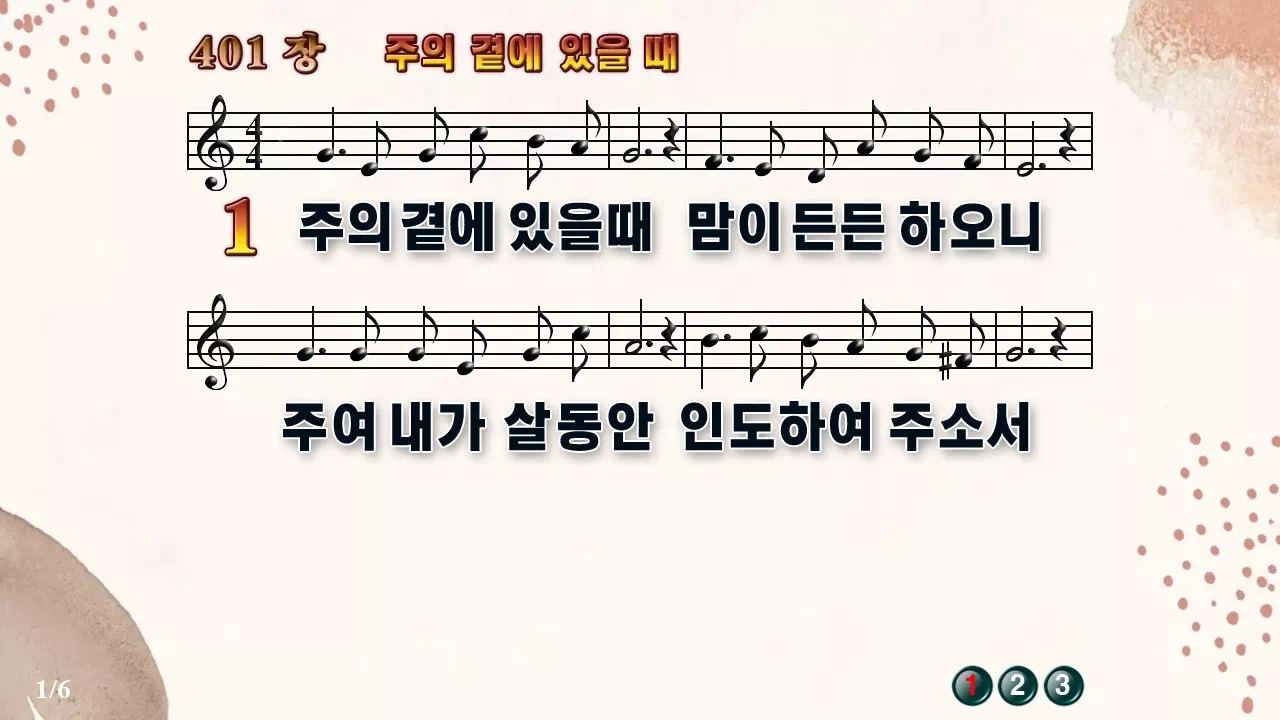 새찬송가 PPT: 401장 주의 곁에 있을때(16:9/가사/PPT악보/다운로드/배경O)