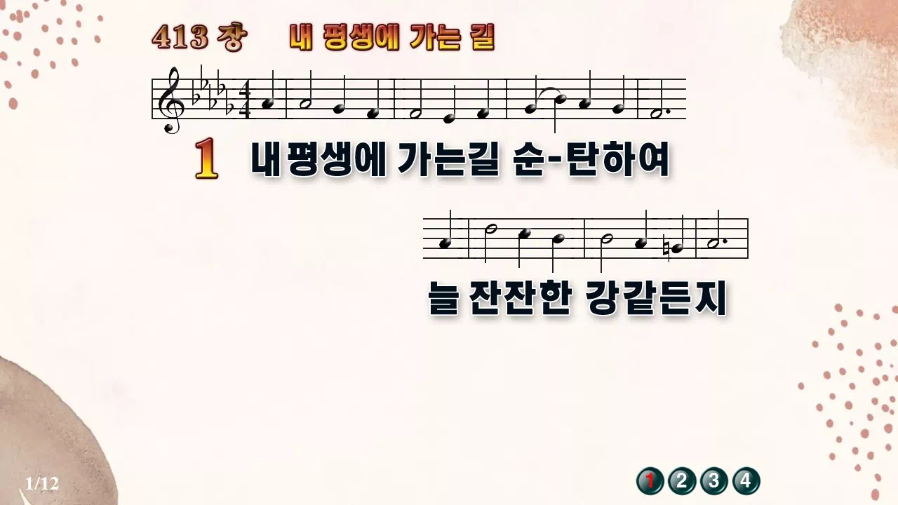 새찬송가 '413장 내 평생에 가는 길'16:9 와이드버전으로 편집된 새찬송가 PPT악보입니다.