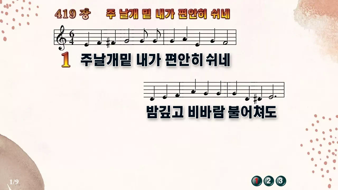 새찬송가 PPT: 419장 주 날개 밑 내가 편안히 쉬네(16:9/가사/PPT악보/다운로드/배경O)