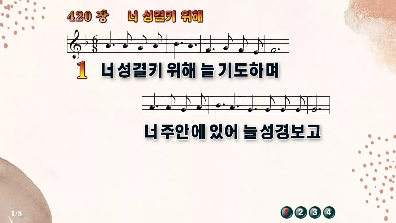새찬송가 '420장 너 성결키 위해'의 16:9 와이드버전으로 편집된 새찬송가 PPT악보입니다.