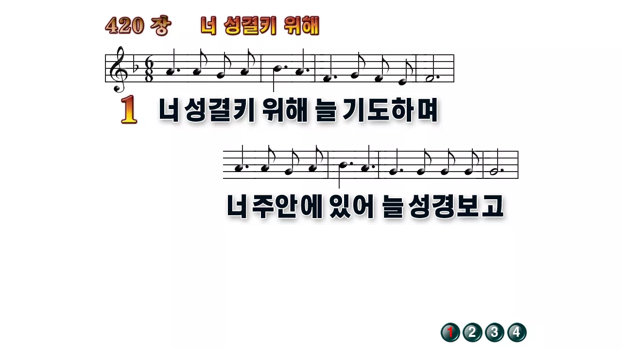 새찬송가 '420장 너 성결키 위해'16:9 와이드버전으로 편집된 배경 없는 새찬송가 PPT악보입니다.