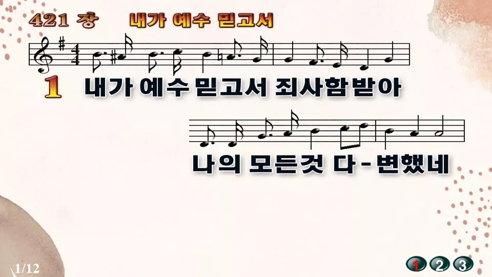 새찬송가 '421장 내가 예수 믿고서'의 16:9 와이드버전으로 편집된 새찬송가 PPT악보입니다.