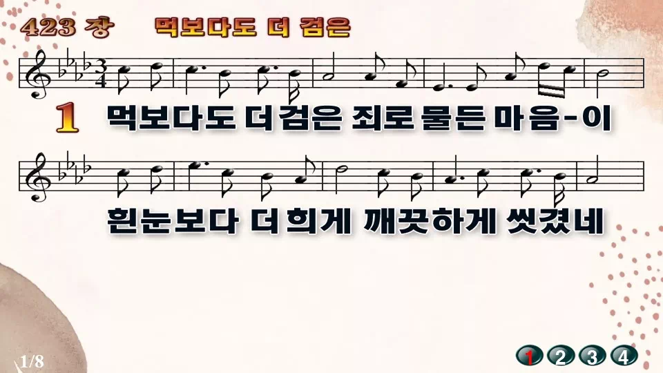 새찬송가 PPT: 423장 먹보다도 더 검은(16:9/가사/PPT악보/다운로드/배경O)