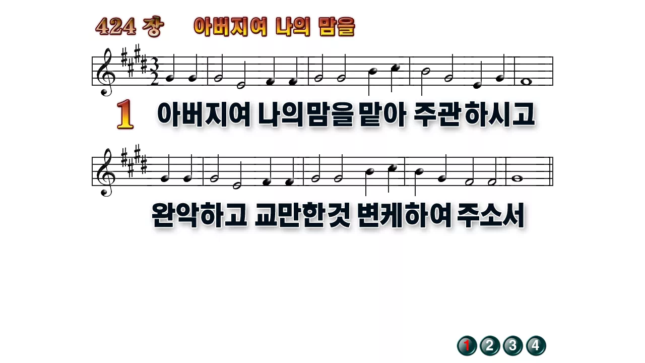 새찬송가 '424장 아버지여 나의 맘을'16:9 와이드버전으로 편집된 배경 없는 새찬송가 PPT악보입니다.