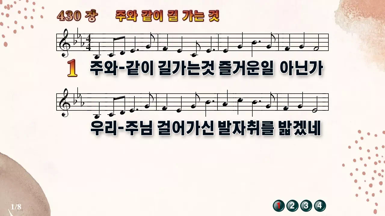 새찬송가 '430장 주와 같이 길 가는것'의 16:9 와이드버전으로 편집된 새찬송가 PPT악보입니다.