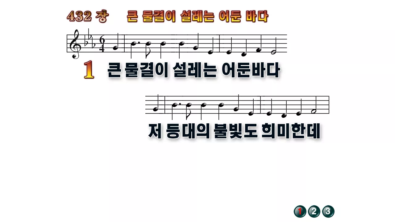 새찬송가 PPT: 432장 큰 물결이 설레는 어둔 바다(16:9/가사/PPT악보/다운로드/배경X)