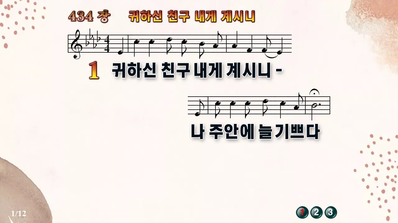 새찬송가 '434장 귀하신 친구 내게 계시니'의 16:9 와이드버전으로 편집된 새찬송가 PPT악보입니다.