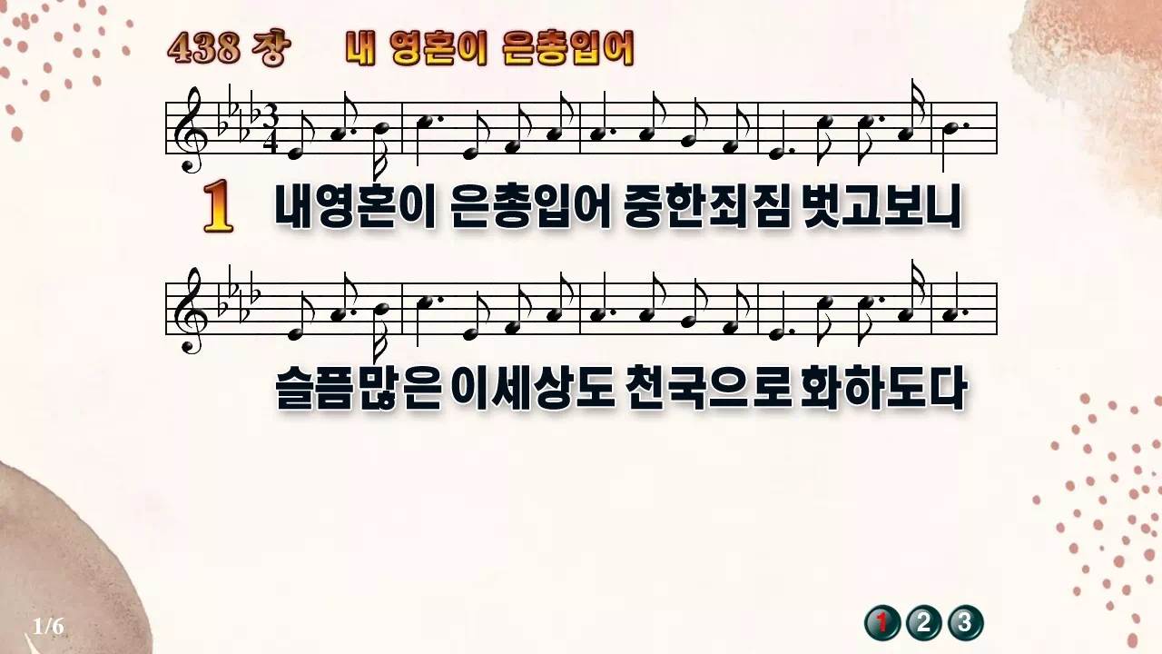 새찬송가 '438장 내 영혼이 은총입어'의 16:9 와이드버전으로 편집된 새찬송가 PPT악보입니다.
