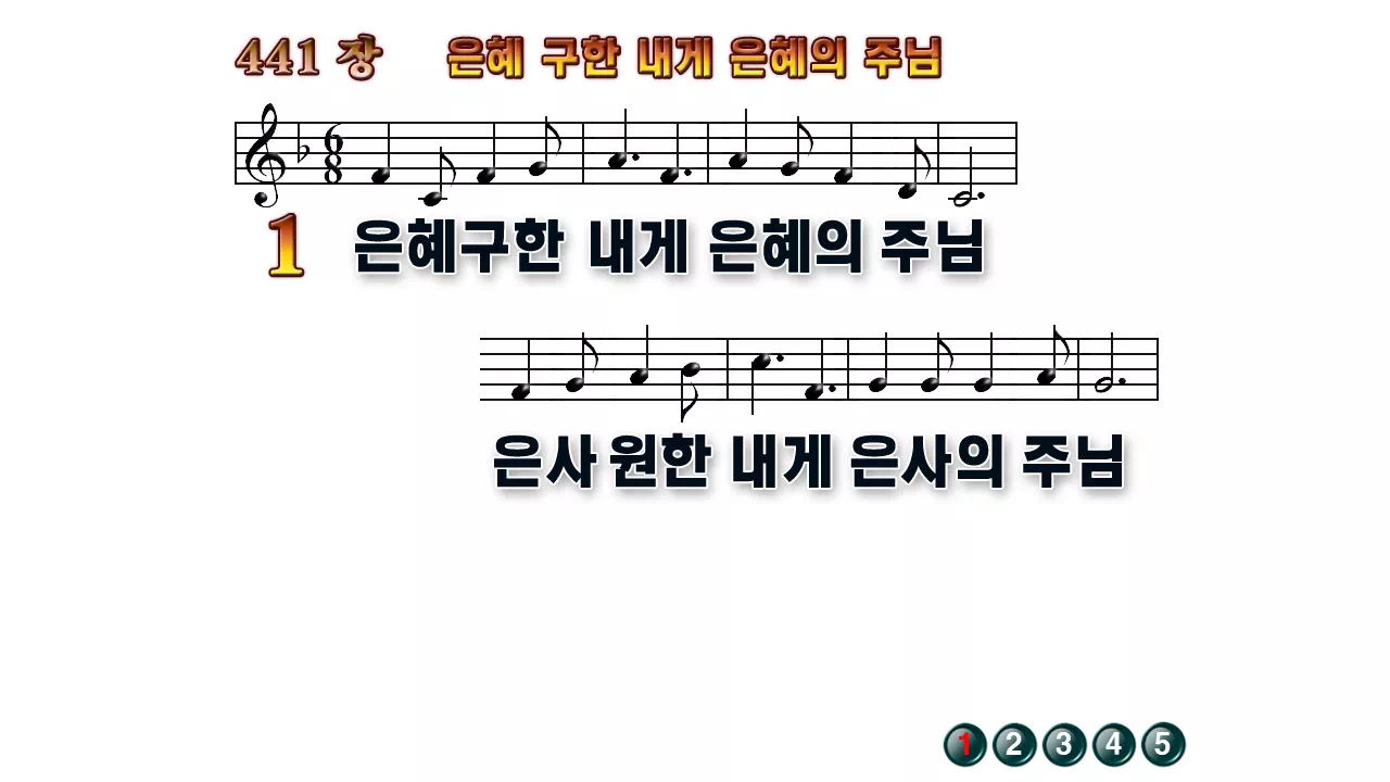 새찬송가 '441장 은혜구한 내게 은혜의 주님'의 16:9 와이드버전으로 편집된 배경 없는 새찬송가 PPT악보입니다.